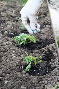 2- Para cada planta tem de se abrir uma cova de plantação (no mínimo duas vezes o tamanho do torrão da planta), depois colocar a planta, encher a cova com composto e aconchegá-la.