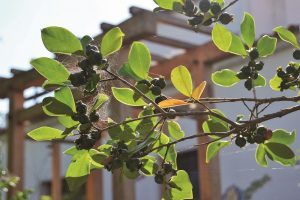 Em pouco tempo, flores belíssimas de maracujá pendem da figueira, emaranham-se no arco da glicínia como se fossem uma e a mesma coisa de tal forma que até já houve quem me dissesse: “- Ah, a minha glícinia dá flores muito diferentes…”. Ups, olhe com atenção!