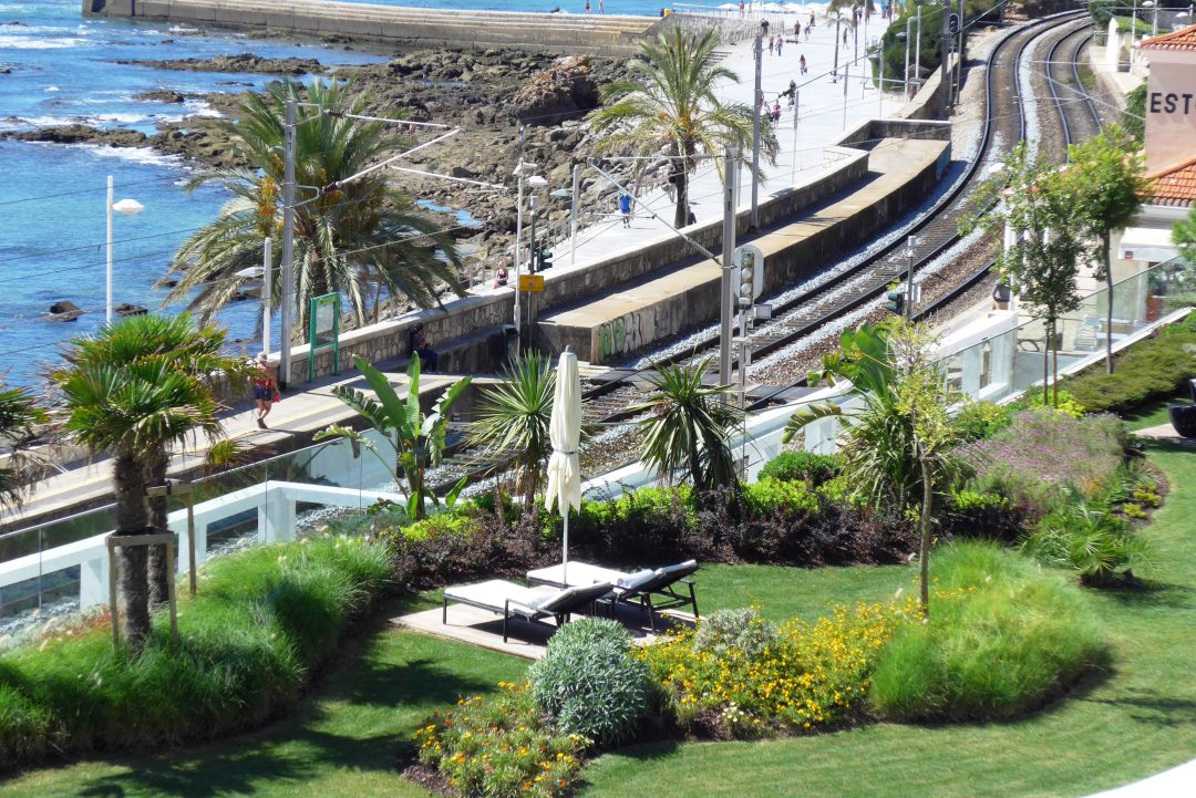 No troço fronteiro ao hotel, o tapete betuminoso foi substituído por calçada de cubos de granito rosa; nos passeios, surgiram as ondas do oceano em calçada branca e preta; a vegetação, composta por escultóricas oliveiras-bonsai e outras plantas singulares, teve o objetivo de assinalar o hotel, mas também o de tornar a circulação na marginal mais “atrativa” e prazerosa.