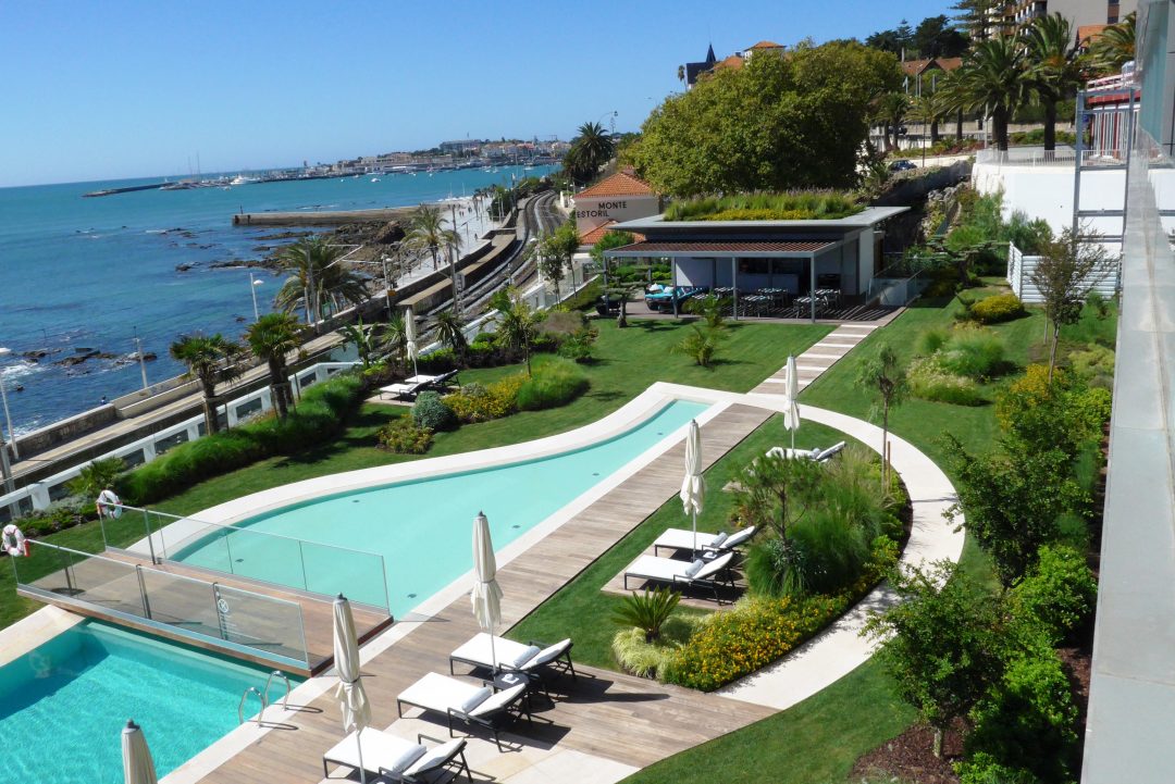 Apresentando o hotel uma exposição Norte-Sul, surgem inevitavelmente duas conceções distintas: Jardins Norte e Jardim Atlântico, a sul.