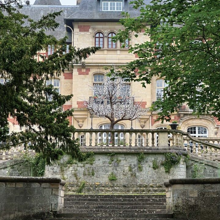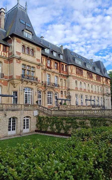 Este hotel de charme onde ficámos merece que lhe dedique algumas linhas. Trata-se deum sítio especial, o maior hotel-castelo em França, estando inserido numa propriedade de seis hectares, que inclui um jardim e um bosque. Foi construído no século passado pela família Rothschild num estilo anglo-normando. Tanto os quartos como as zonas comuns – bar e restaurante – são de extremo bom gosto e conforto. Situa-se muito perto de Chantilly e a apenas 35 km de Paris.