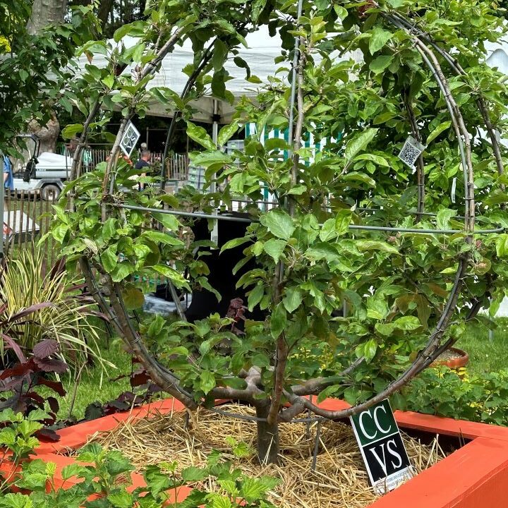 Tem umas fantásticas topiárias em diversas plantas diferentes, desde os tradicionais buxos, teixos, etc. até plantas bem mais mediterrânicas como algumas variedades de azinheiras. Nas laterais do jardim formal, podemos também apreciar uma horta muito bem organizada, um caminho ladeado por peónias e outras flores de época e um pomar.