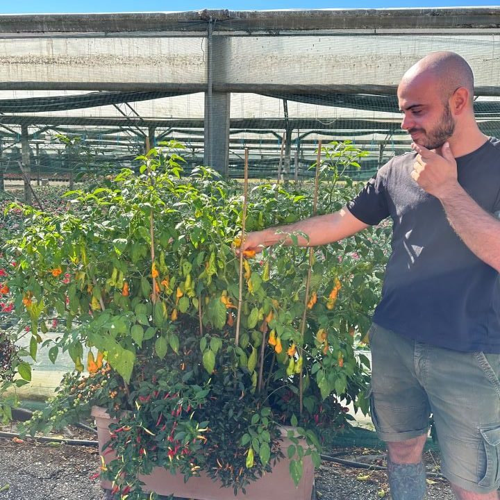 Em 2020, eu tinha visitado o Mr Pic a convite da Flora Toscana e quis muito incluir esta experiência nesta viagem, pois há mais de 30 anos é líder de mercado na produção de piripíris. Fomos recebidos por Jacomo Carmazzi, que nos mostrou toda a exploração e algumas das suas plantas mais interessantes, e por Luca Quilici, da Flora Toscana, que nos acompanhou a todos os produtores. Esta produção existe desde 1860. Marco Carmazzi sucedeu ao pai nos anos 1970, tendo desenvolvido a produção e flores e plantas de época bem como plantas aromáticas e piripíri, tendo-se posteriormente especializado neste ultimo.