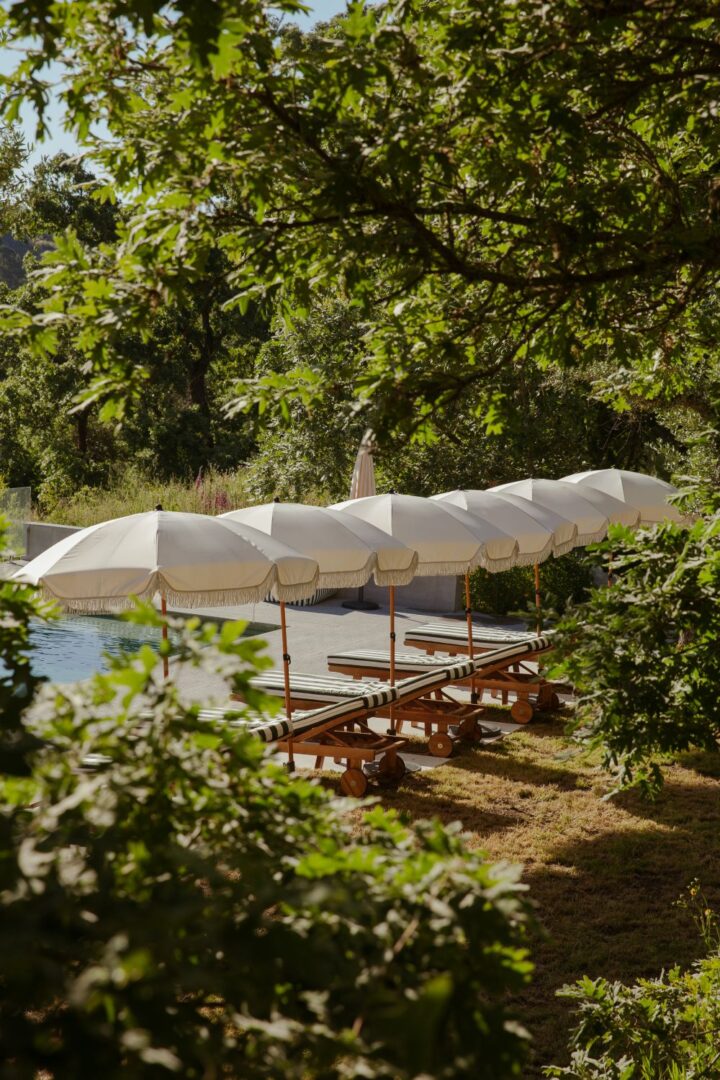 Nos espaços exteriores há sempre algo para descobrir: hortas biológicas, um rooftop para ver o pôr do sol, uma piscina aquecida, sauna, zonas de leitura à sombra. Tudo está integrado na paisagem, sem lhe roubar protagonismo. O que se sente é uma rara harmonia entre o humano e o natural.