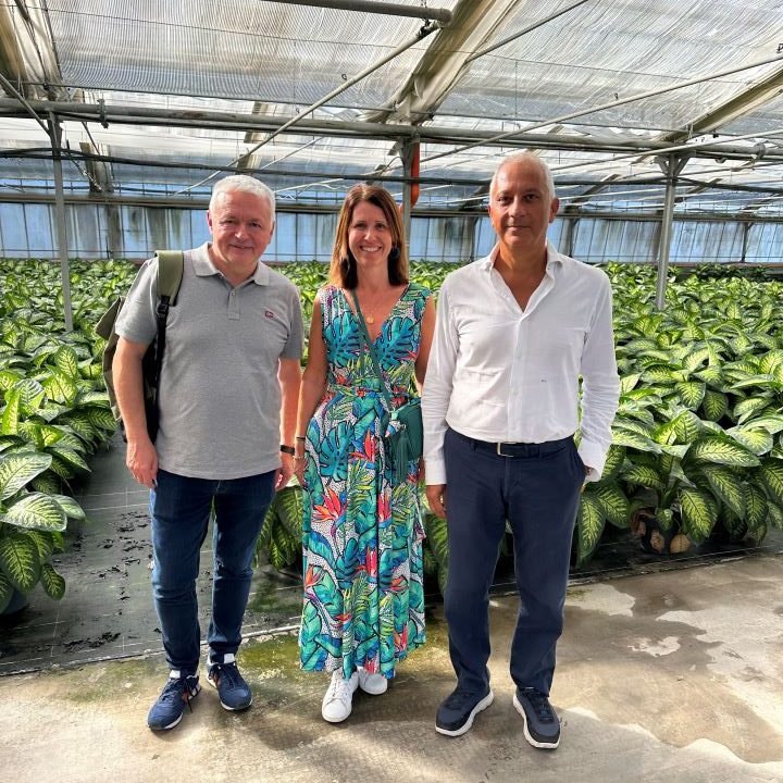 Seguimos viagem para a Floramiata um produtor de plantas de interior associado da Flora Toscana, com uma área de produção de cerca de 27 hectares e que produz mais de três milhões de plantas por ano. Luca Quilici da Flora Toscana, continuou a acompanhar-nos na viagem e fomos recebidos pelo CEO da empresa, Roberto Leo, que nos mostrou como se faz a produção desde a planta-mãe até à planta final.