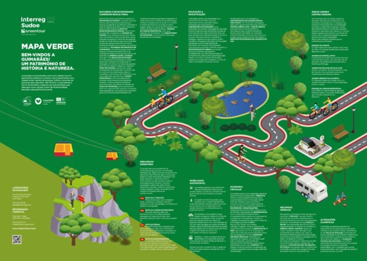 Um dos instrumentos mais visíveis deste compromisso é o Mapa Verde de Guimarães, uma plataforma digital interativa criada no âmbito da Capital Verde Europeia 2026 que reúne informação georreferenciada sobre espaços verdes, trilhos pedonais e cicláveis, património natural, pontos de interesse ambiental, projetos de sustentabilidade e iniciativas comunitárias. Mais do que um simples roteiro, o mapa funciona como ferramenta pedagógica e de participação cívica, permitindo aos cidadãos e visitantes descobrir infraestruturas ambientais, acompanhar intervenções no território e compreender a estratégia ecológica do município de forma transparente. Ao tornar acessível e navegável a informação ambiental da cidade, o Mapa Verde reforça a ideia de que a transição sustentável não é abstrata — está inscrita no território e pode ser explorada, percorrida e vivida.