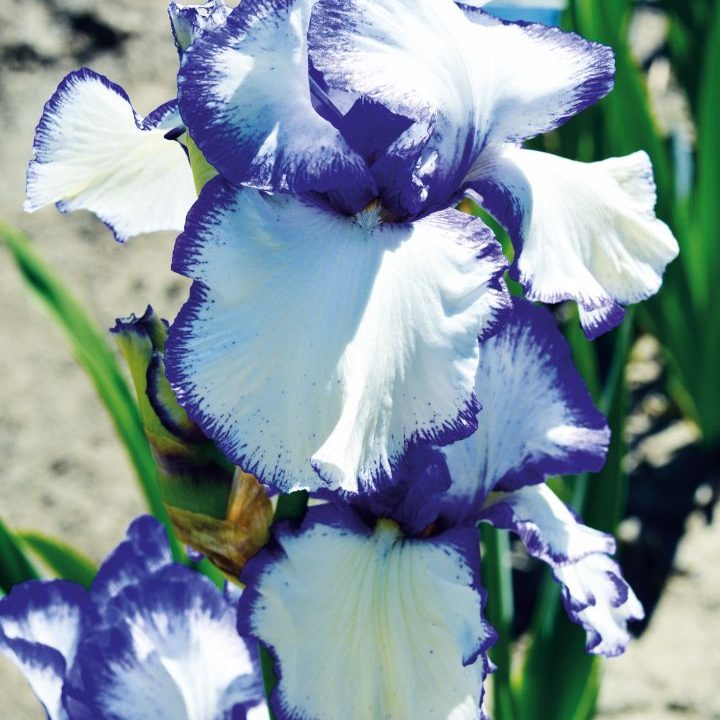 São conhecidos em inglês como bearded iris devido à presença de uma “barba” característica de pelos coloridos nas sépalas, que atuam como um guia para os polinizadores. Possuem três pétalas verticais designadas por “estandartes” e três sépalas voltadas para baixo, conhecidas por “quedas”.