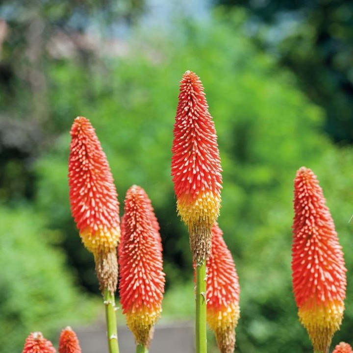 Conhecida como lírio-tocha, esta é uma herbácea perene que impressiona pela sua floração encarnada, laranja e amarela que se pode prolongar da primavera ao outono. A planta pode atingir 1-15 metros de altura. Gosta de zonas com sol, mas também se consegue adaptar à meia-sombra. Prefere solos bem drenados, férteis e com alguma matéria orgânica. Resistente à secura, requer apenas regas moderadas.