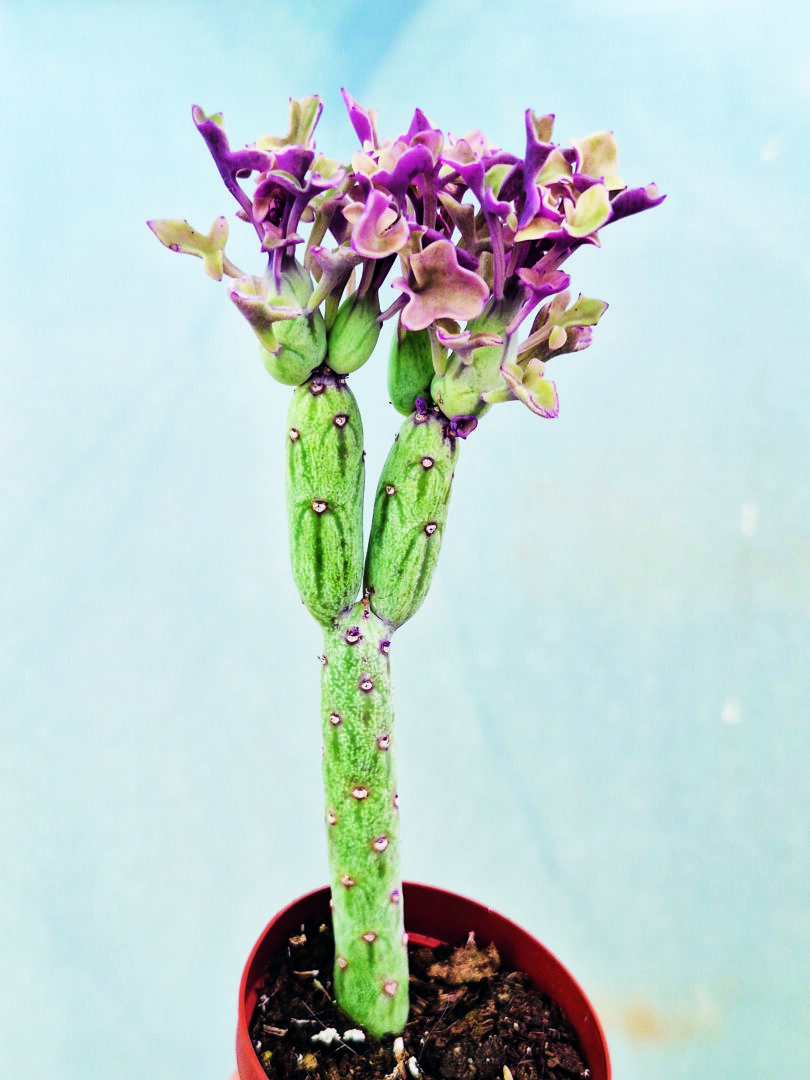 Uma suculenta singular de caules articulados e tons mutáveis que parecem pintados à mão. Originária da África do Sul, esta espécie conjuga delicadeza estética com uma resistência surpreendente.