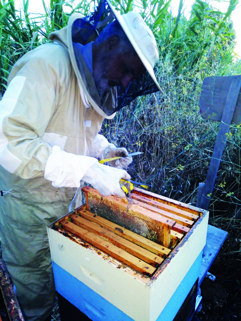 O apicultor, depois de chegado ao apiário, começa a equipar-se. Máscara de rede, luvas e botas protegem-no das certas ferroadas se não tomasse essas precauções. A nossa abelha, a Apis melifera iberiensis, é algo agressiva e a lei acautela os riscos inerentes, nomeadamente estipulando as distâncias de segurança que os apiários devem observar em relação a caminhos públicos e habitações.